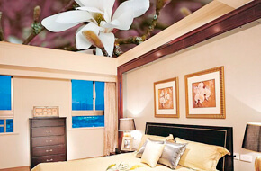 В белый сатиновый потолокс фотопечатью 9,7 м2
