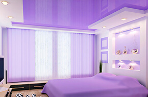 Лиловый глянцевый потолок в гостиной 19 м2